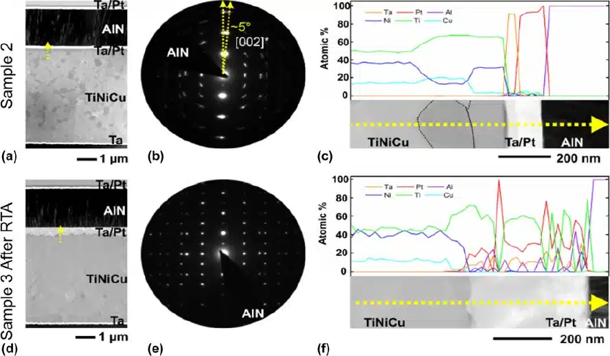 Curtis, S.M., Wolff, N., Dengiz, D., Lewitz, H., Jetter, J., Bumke, L., Hayes, P., Yarar, E., Thormählen, L., Kienle, L. and Meyners, D., 2020. Integration of AlN piezoelectric thin films on ultralow fatigue TiNiCu shape memory alloys. Journal of Materials Research, 35(10), pp.1298-1306.
