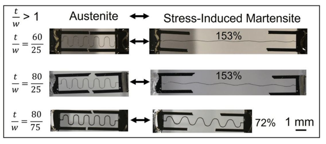 Auxetic shape memory alloy (SMA) materials offer many opportunities for ballistics, deployable antennas, actuators, stretchable electronics, and biomedical devices. Auxetic materials are periodic structures characterized by a negative Poisson’s ratio, meaning they expand laterally when stretched longitudinally.
